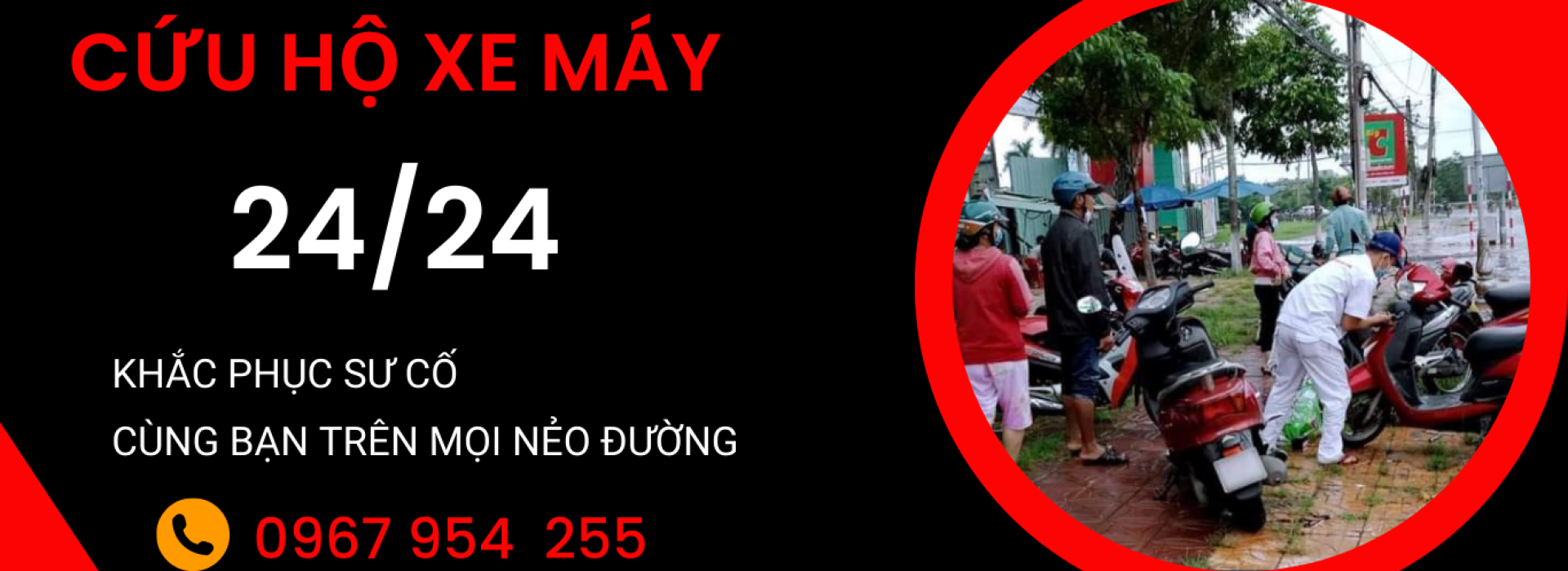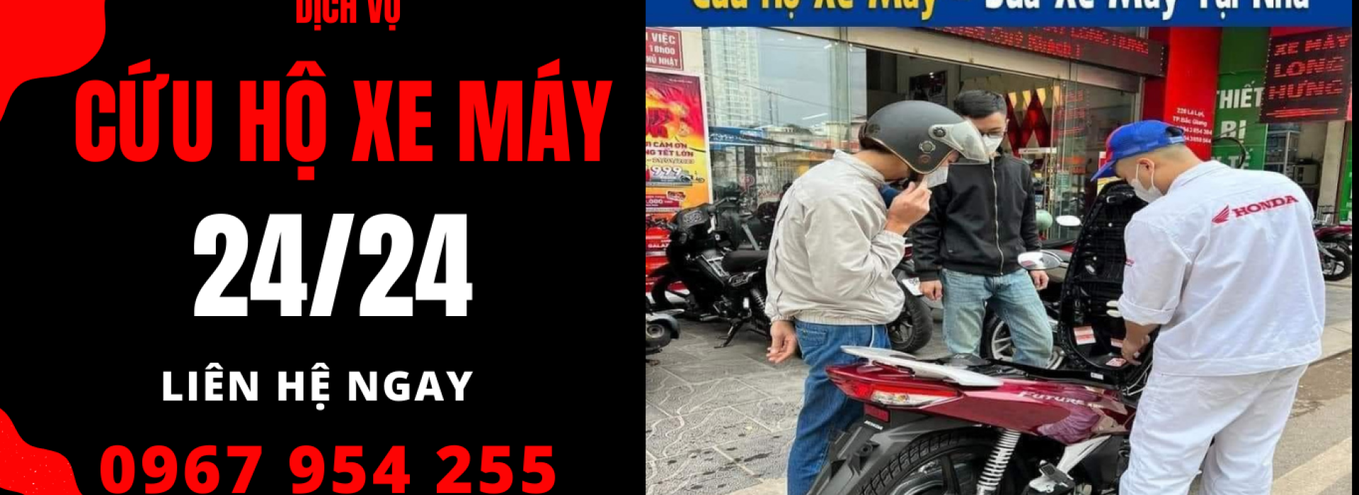 Các bạn có thể gọi ngay cho chúng tôi khi xe máy của bạn gặp sự cố dù đang ở trên đường hay dưới hầm gửi xe của các tòa nhà, chung cư, siêu thị, bãi gửi xe …